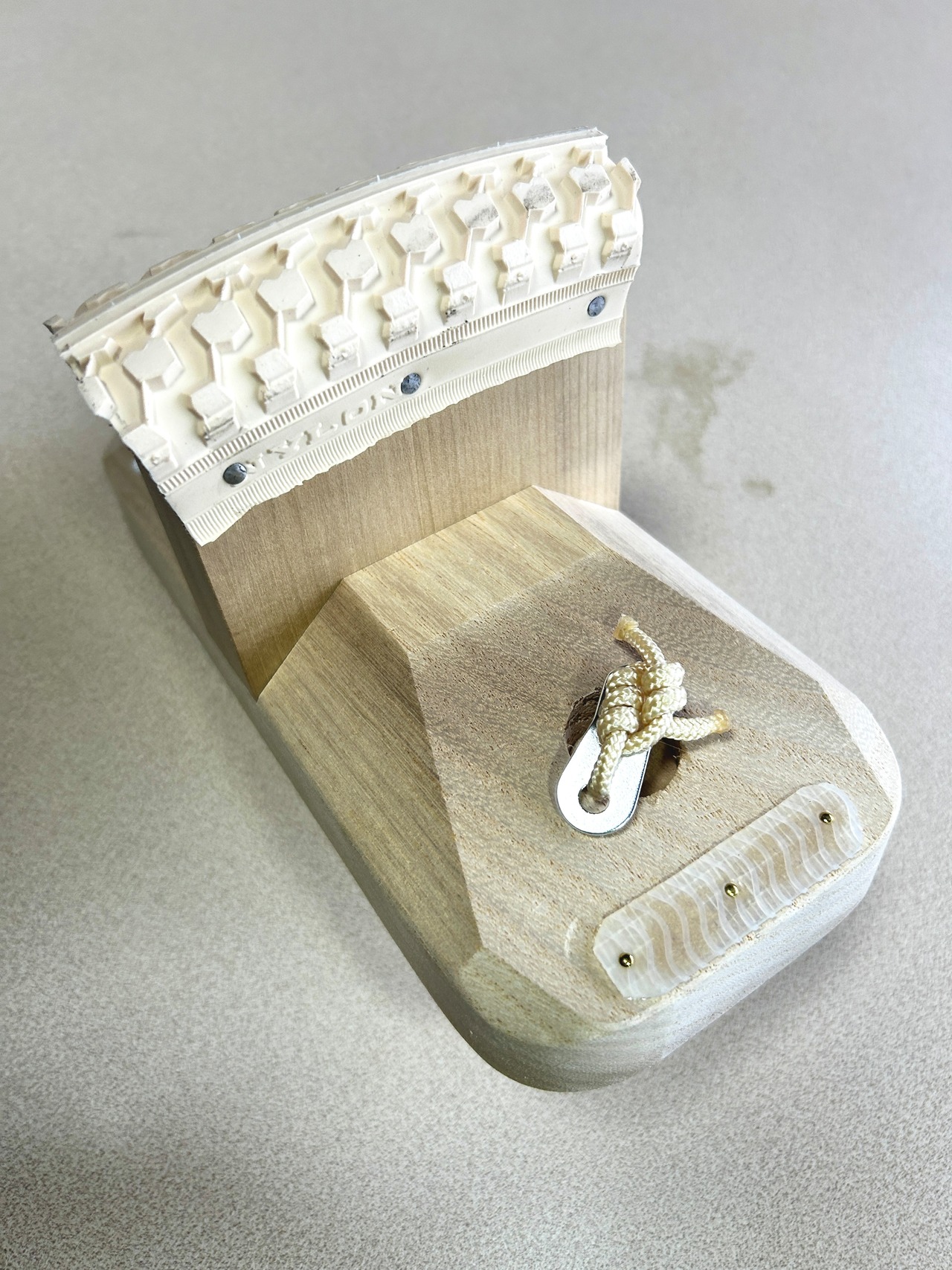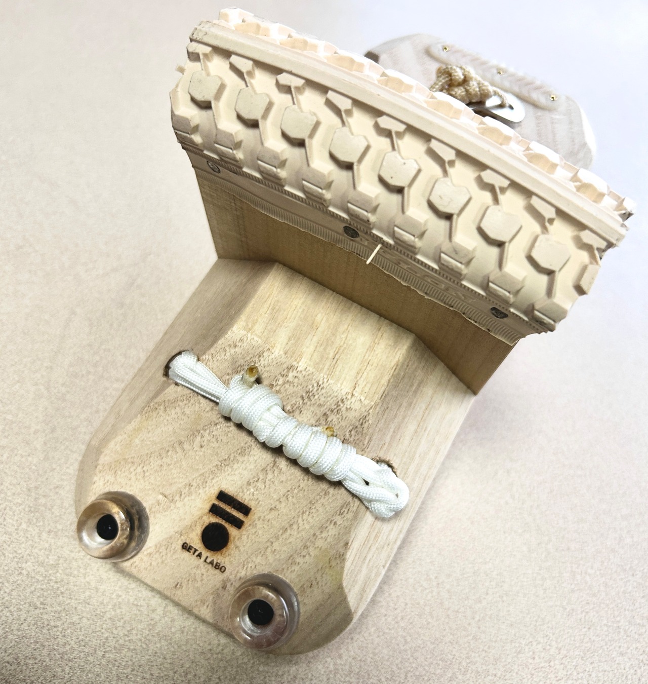 台の裏には後ろ側にパンパークッション(2箇所)、前方に摩耗防止用ゴムプレート装着。一本歯下駄を保護してくれます。