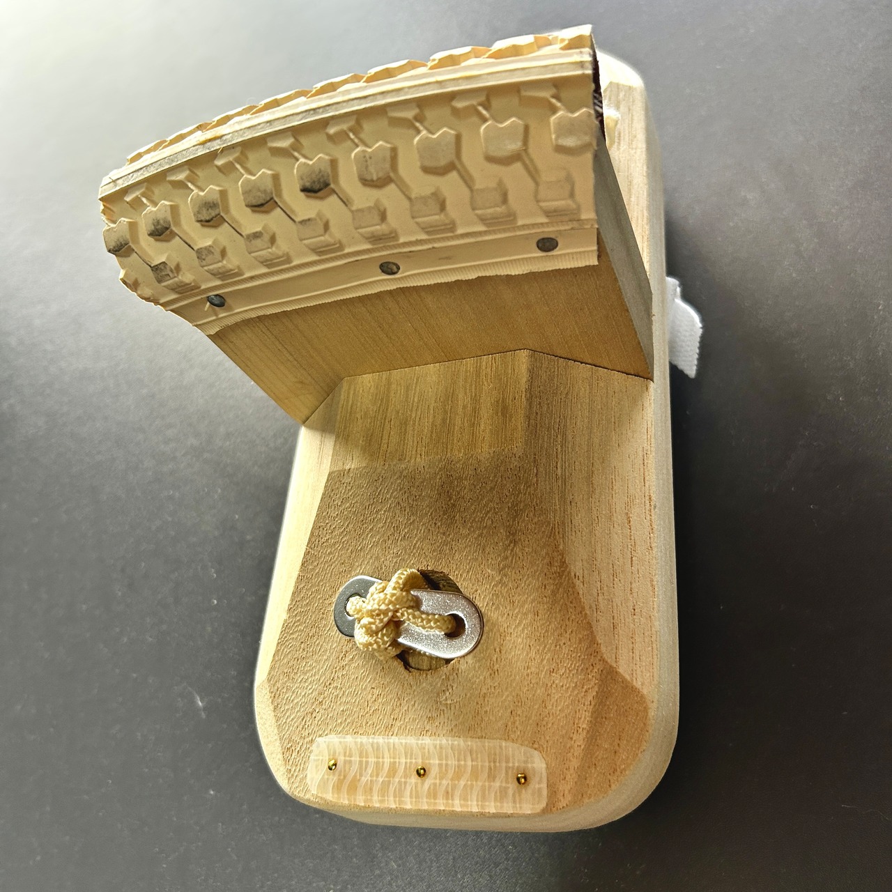 台の裏には後ろ側にクリスタルのパンパークッション(2箇所)、前方に摩耗防止用ゴムプレート装着。一本歯下駄を保護してくれます。